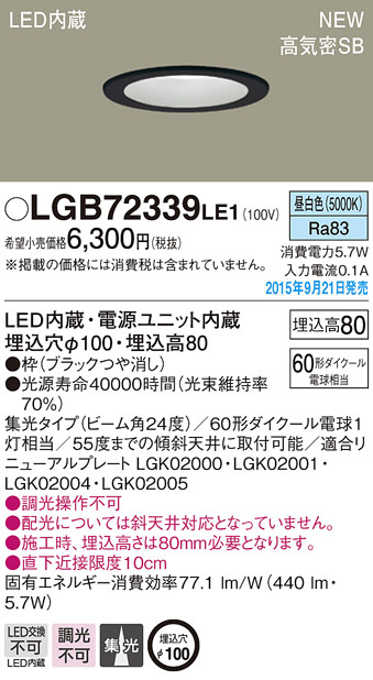 PANASONIC ¥Ñ¥Ê¥½¥Ë¥Ã¥¯ ¥À¥¦¥ó¥é¥¤¥È LGB72339LE1