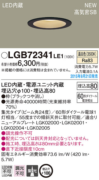 PANASONIC ¥Ñ¥Ê¥½¥Ë¥Ã¥¯ ¥À¥¦¥ó¥é¥¤¥È LGB72341LE1