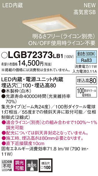 PANASONIC ¥Ñ¥Ê¥½¥Ë¥Ã¥¯ ¥À¥¦¥ó¥é¥¤¥È LGB72373LB1