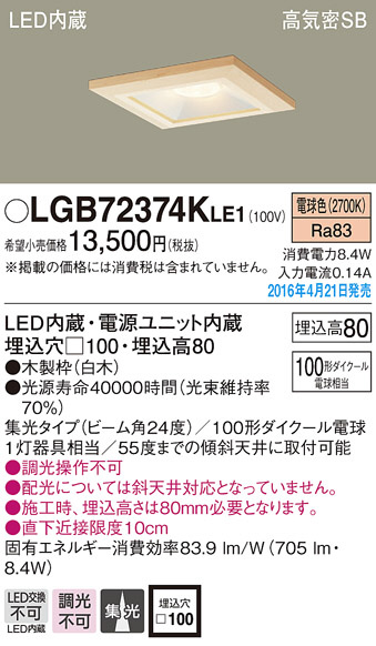 PANASONIC ¥Ñ¥Ê¥½¥Ë¥Ã¥¯ ¥À¥¦¥ó¥é¥¤¥È LGB72374KLE1