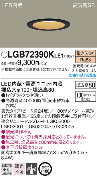 PANASONIC ¥Ñ¥Ê¥½¥Ë¥Ã¥¯ ¥À¥¦¥ó¥é¥¤¥È LGB72390KLE1