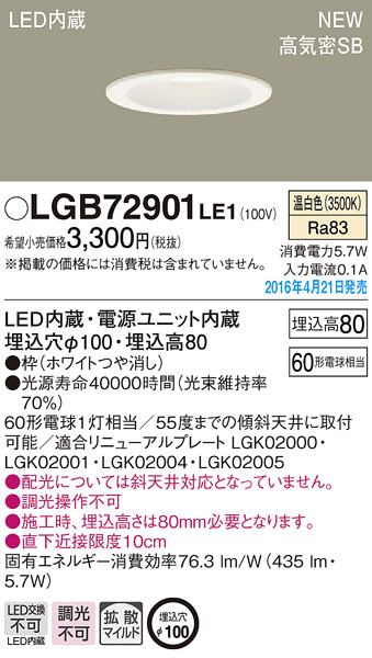PANASONIC ¥Ñ¥Ê¥½¥Ë¥Ã¥¯ ¥À¥¦¥ó¥é¥¤¥È LGB72901LE1