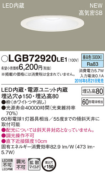 PANASONIC ¥Ñ¥Ê¥½¥Ë¥Ã¥¯ ¥À¥¦¥ó¥é¥¤¥È LGB72920LE1