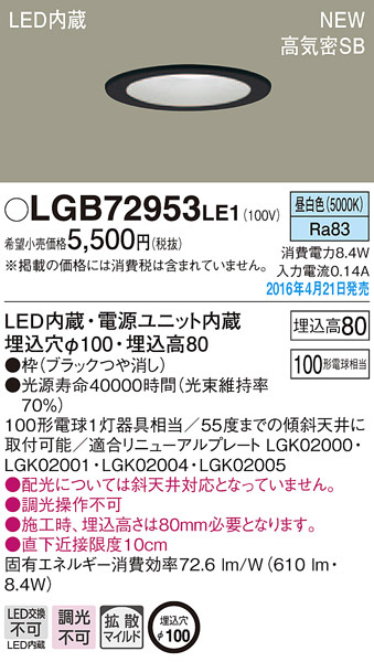 PANASONIC ¥Ñ¥Ê¥½¥Ë¥Ã¥¯ ¥À¥¦¥ó¥é¥¤¥È LGB72953LE1