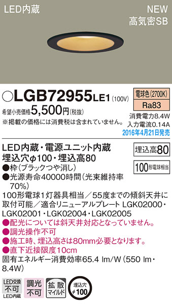 PANASONIC ¥Ñ¥Ê¥½¥Ë¥Ã¥¯ ¥À¥¦¥ó¥é¥¤¥È LGB72955LE1