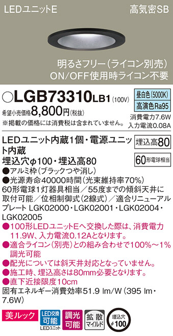 Panasonic ¥À¥¦¥ó¥é¥¤¥È LGB73310LB1