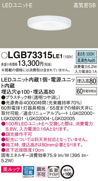 Panasonic ¥À¥¦¥ó¥é¥¤¥È LGB73315LE1