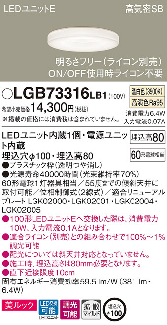 Panasonic ¥À¥¦¥ó¥é¥¤¥È LGB73316LB1