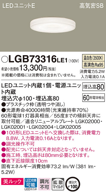 Panasonic ¥À¥¦¥ó¥é¥¤¥È LGB73316LE1