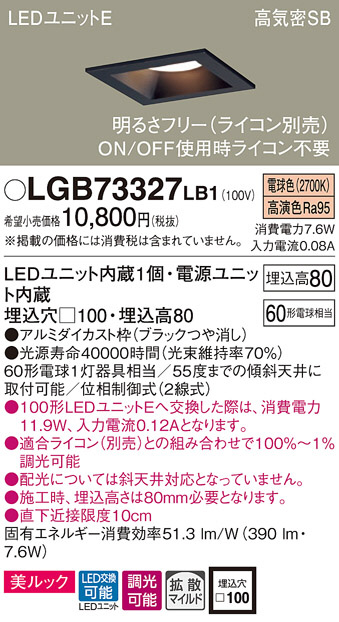 Panasonic ¥À¥¦¥ó¥é¥¤¥È LGB73327LB1