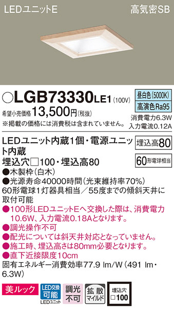 Panasonic ¥À¥¦¥ó¥é¥¤¥È LGB73330LE1