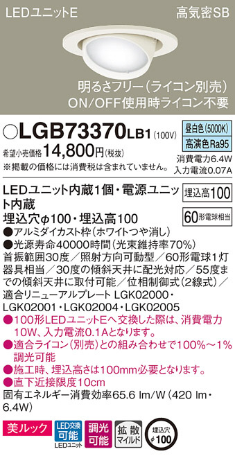 Panasonic ¥À¥¦¥ó¥é¥¤¥È LGB73370LB1
