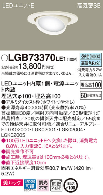 Panasonic ¥À¥¦¥ó¥é¥¤¥È LGB73370LE1