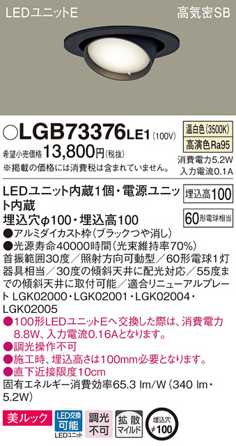 Panasonic ¥À¥¦¥ó¥é¥¤¥È LGB73376LE1