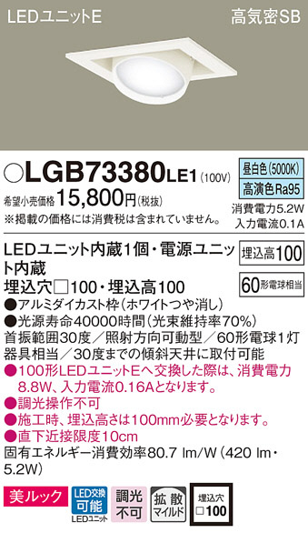 Panasonic ¥À¥¦¥ó¥é¥¤¥È LGB73380LE1