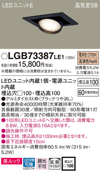 Panasonic ¥À¥¦¥ó¥é¥¤¥È LGB73387LE1