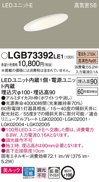 Panasonic ¥À¥¦¥ó¥é¥¤¥È LGB73392LE1