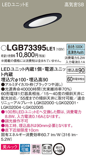 Panasonic ¥À¥¦¥ó¥é¥¤¥È LGB73395LE1
