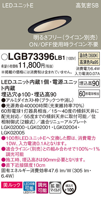 Panasonic ¥À¥¦¥ó¥é¥¤¥È LGB73396LB1