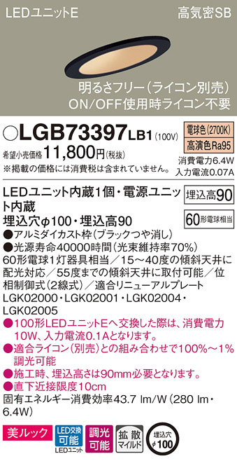 Panasonic ¥À¥¦¥ó¥é¥¤¥È LGB73397LB1