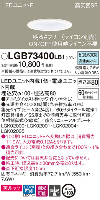 Panasonic ¥À¥¦¥ó¥é¥¤¥È LGB73400LB1