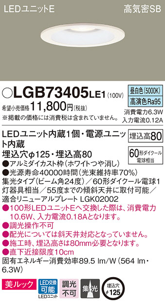Panasonic ¥À¥¦¥ó¥é¥¤¥È LGB73405LE1