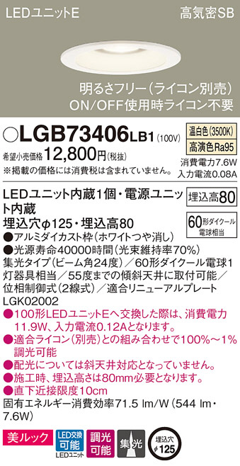 Panasonic ¥À¥¦¥ó¥é¥¤¥È LGB73406LB1