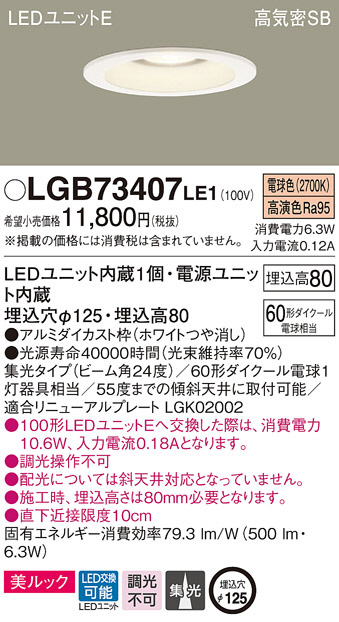 Panasonic ¥À¥¦¥ó¥é¥¤¥È LGB73407LE1