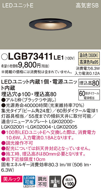 Panasonic ¥À¥¦¥ó¥é¥¤¥È LGB73411LE1