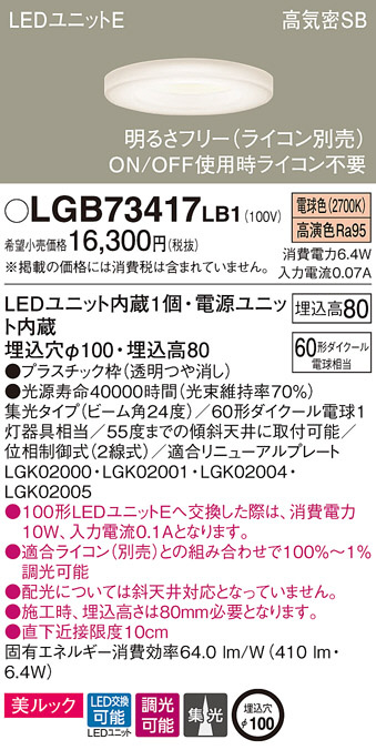 Panasonic ¥À¥¦¥ó¥é¥¤¥È LGB73417LB1