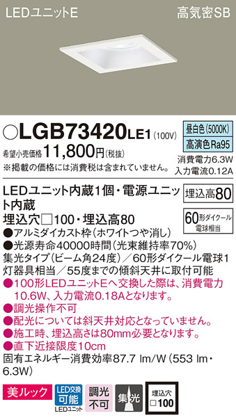 Panasonic ¥À¥¦¥ó¥é¥¤¥È LGB73420LE1
