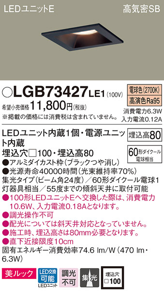 Panasonic ¥À¥¦¥ó¥é¥¤¥È LGB73427LE1
