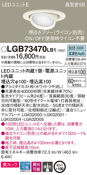 Panasonic ¥À¥¦¥ó¥é¥¤¥È LGB73470LB1