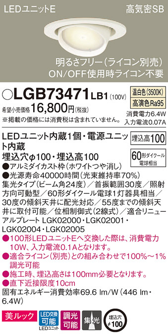 Panasonic ¥À¥¦¥ó¥é¥¤¥È LGB73471LB1