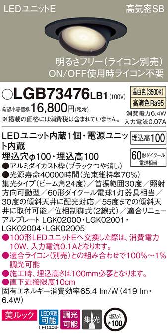 Panasonic ¥À¥¦¥ó¥é¥¤¥È LGB73476LB1