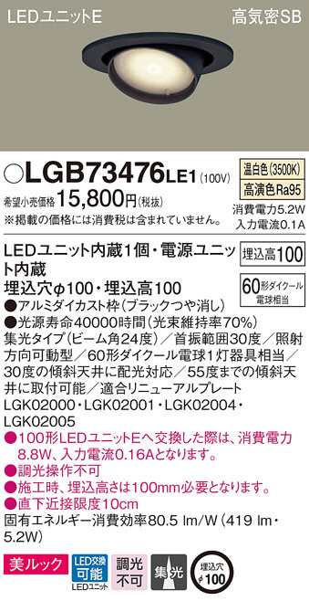 Panasonic ¥À¥¦¥ó¥é¥¤¥È LGB73476LE1