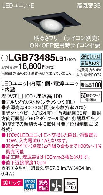 Panasonic ¥À¥¦¥ó¥é¥¤¥È LGB73485LB1