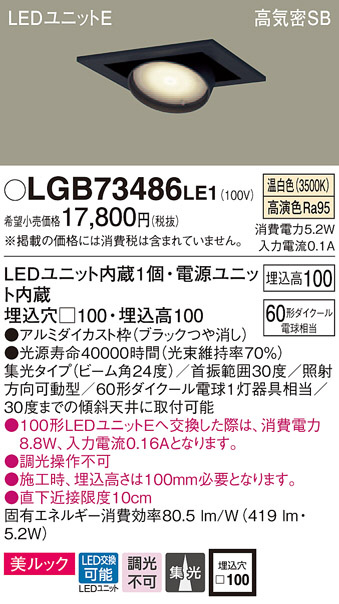Panasonic ¥À¥¦¥ó¥é¥¤¥È LGB73486LE1