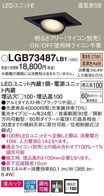 Panasonic ¥À¥¦¥ó¥é¥¤¥È LGB73487LB1