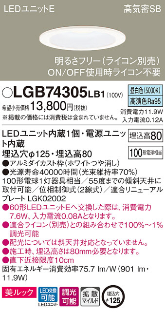 Panasonic ¥À¥¦¥ó¥é¥¤¥È LGB74305LB1