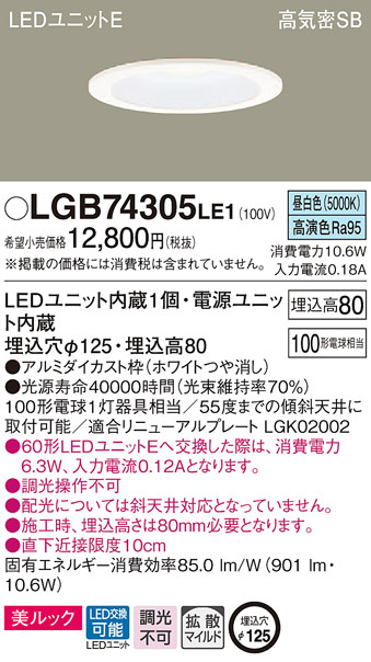 Panasonic ¥À¥¦¥ó¥é¥¤¥È LGB74305LE1