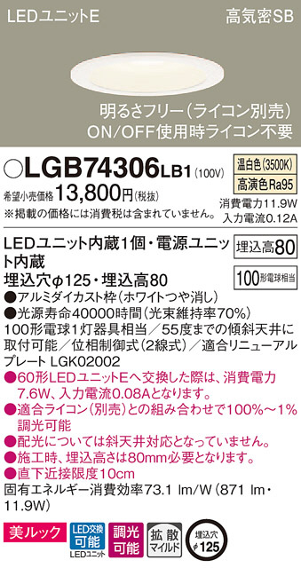 Panasonic ¥À¥¦¥ó¥é¥¤¥È LGB74306LB1
