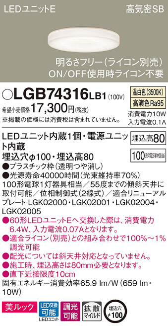 Panasonic ¥À¥¦¥ó¥é¥¤¥È LGB74316LB1