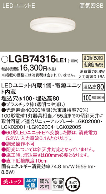 Panasonic ¥À¥¦¥ó¥é¥¤¥È LGB74316LE1