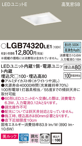 Panasonic ¥À¥¦¥ó¥é¥¤¥È LGB74320LE1