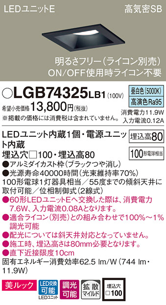 Panasonic ¥À¥¦¥ó¥é¥¤¥È LGB74325LB1