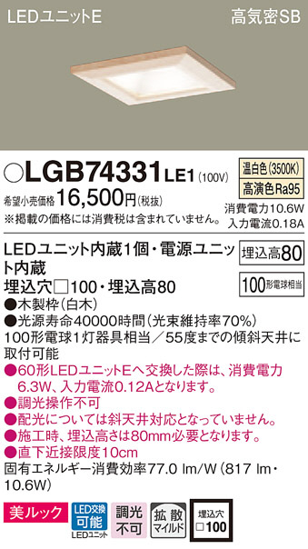 Panasonic ¥À¥¦¥ó¥é¥¤¥È LGB74331LE1