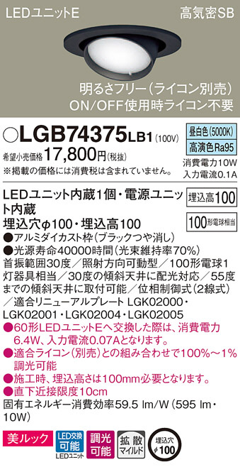 Panasonic ¥À¥¦¥ó¥é¥¤¥È LGB74375LB1