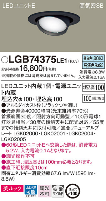 Panasonic ¥À¥¦¥ó¥é¥¤¥È LGB74375LE1