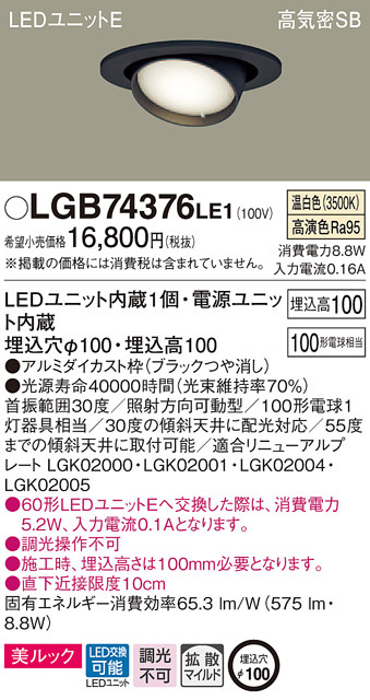 Panasonic ¥À¥¦¥ó¥é¥¤¥È LGB74376LE1